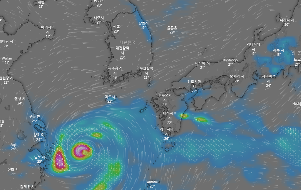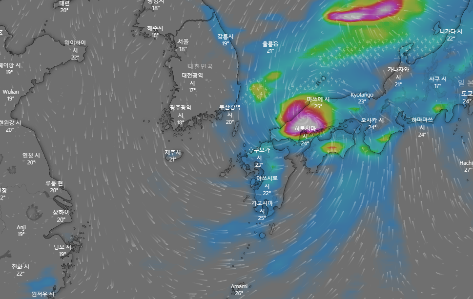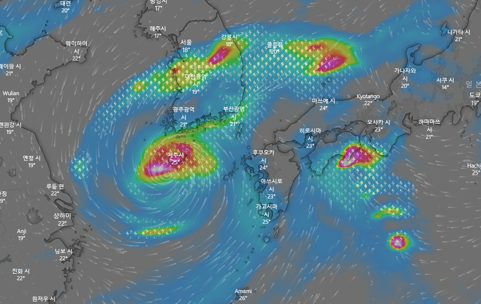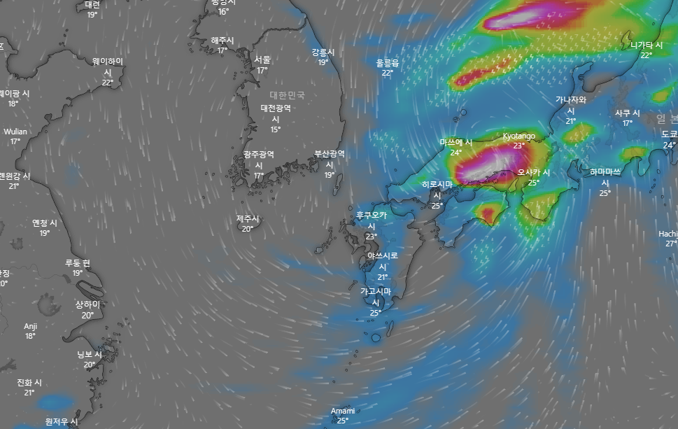 우리나라는 제주도가 직접 영향권에 드는 17일 새벽 부터 17일 밤까지가 태풍의 영향권에 들겠습니다.