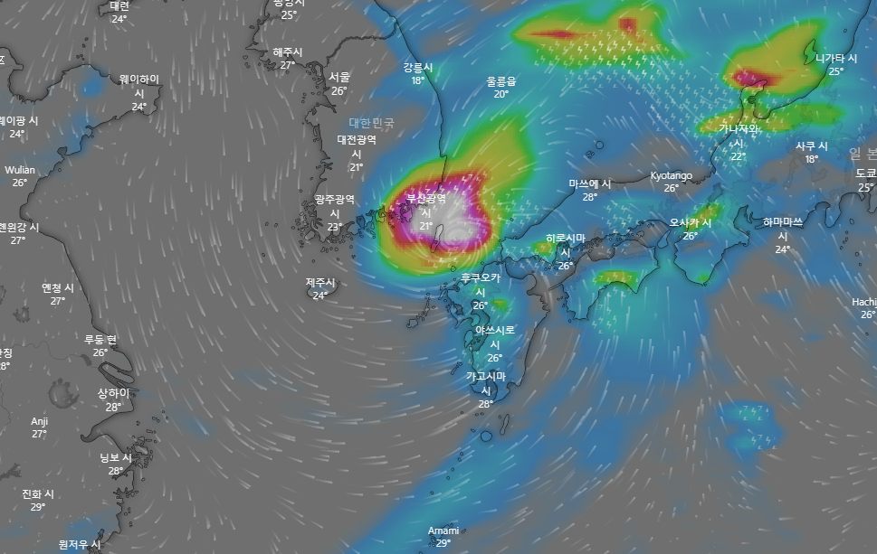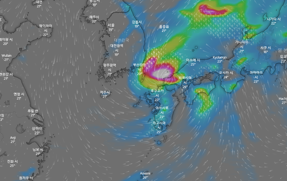 태풍 찬투 경로 제주 지나 고흥 여수 사천 거제도 부산 앞바다 통과