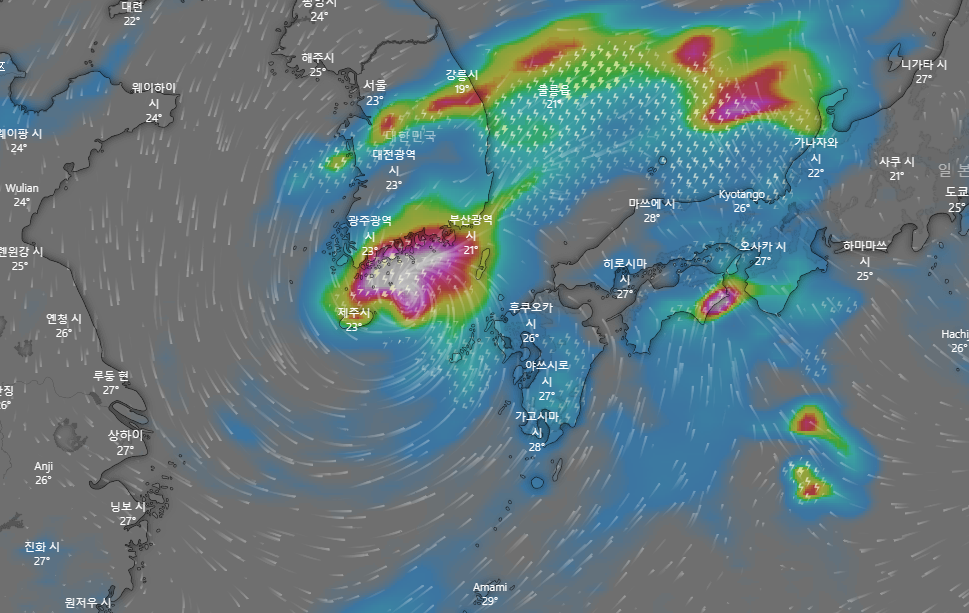 이번 태풍은 많은 비와 바람이 예상 되는 태풍에 대한 각별한 주의가 별요하겠습니다.