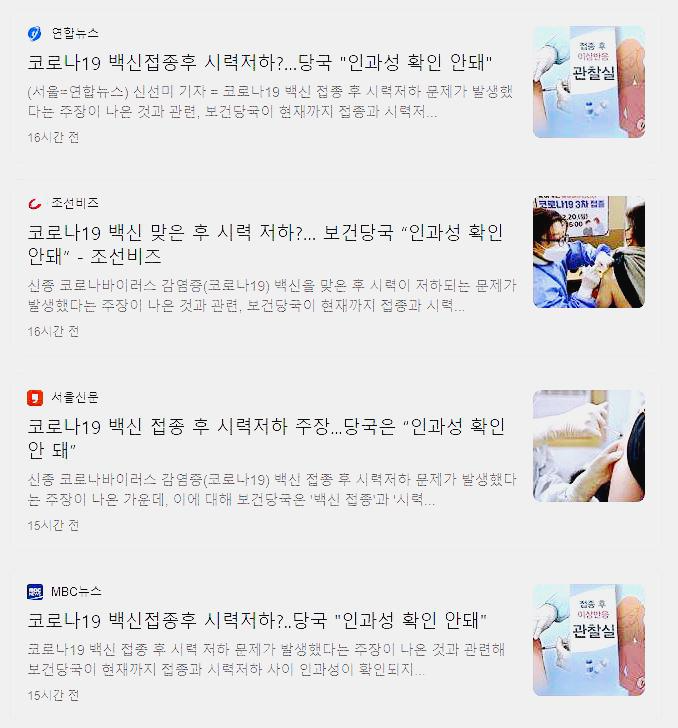 “현재까지 코로나19 백신 접종이 시력 저하를