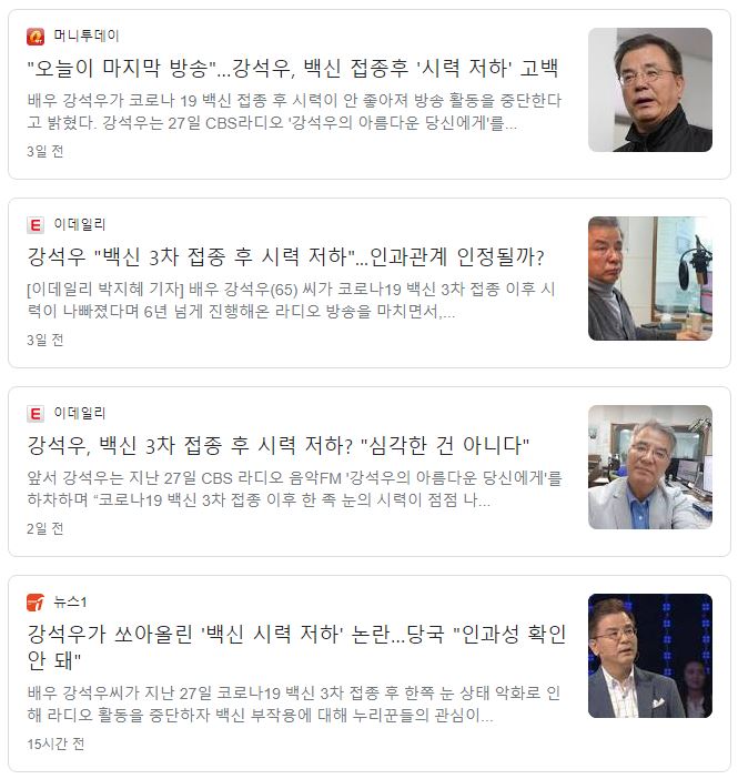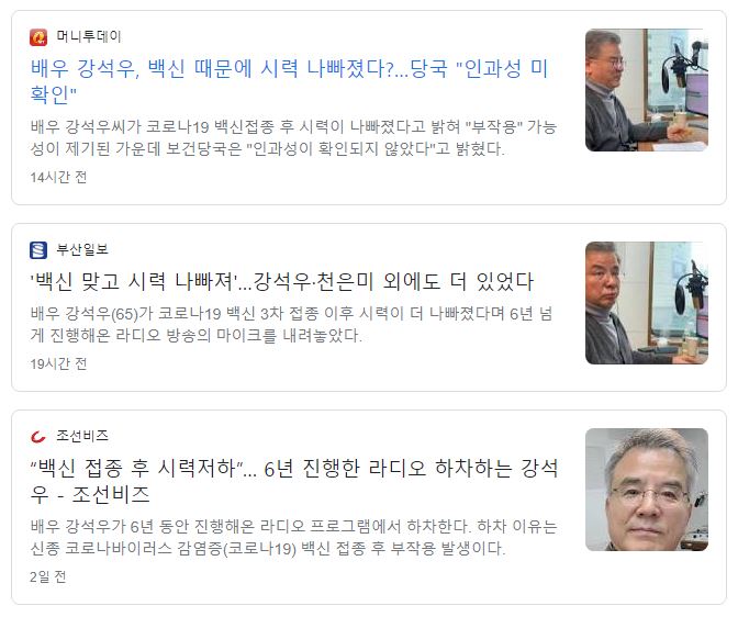 강석우 백신 부작용 하차 3차 접종 '비문증' 시력 저하