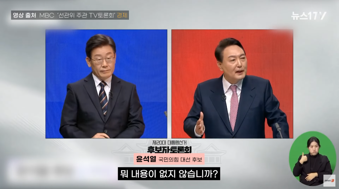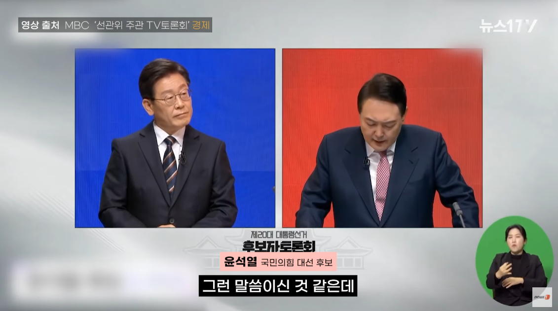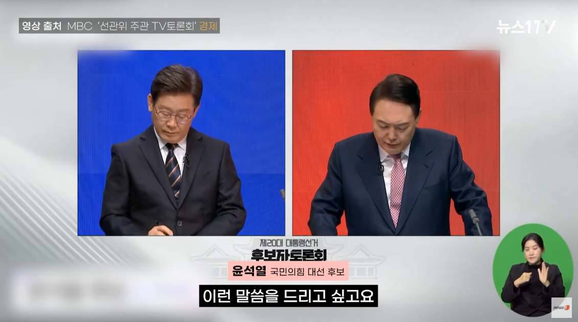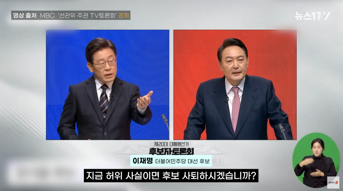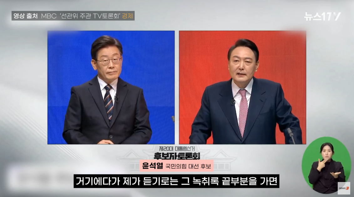 윤석열 후보는 이재명 후보에게