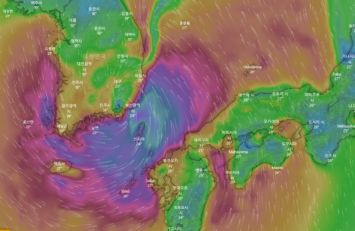 해남, 여수, 장흥, 보성, 고흥, 순천, 광양 일대는 태풍 피해 예상