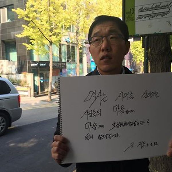 김제동이 역사 교과서 국정화 반대 피켓을 들었다. 주진우 기자는 자신의 페이스북에 한장의 사진을 게재 했는데요 바로 김제동 국정화반대 피켓을 들고 있는 사진 입니다. "역사는 사람들의 마음입니다 - 김제동" 이라는 글과 함께 김제동이 국정화 반대 피켓을 들고 버스정류장 앞에 서있는 사진 입니다. 아래는 국정화 반대의 목소리 입니다. 이재정 경기도 교육감 교육부의 역사 교과서 국정화 고시 철회를 요구이재정 교육감은 "교육부의 역사교과서 국정화 고시 결정은 학생, 교원, 학부모의 의사를 무시한 교육 참사" 며 "앞으로 역사교과서 국정화를 철회할 때까지 학생·학부모·교직원들과 함께 강력하게 행동해 나갈 것" 이라고 밝혔다. 조희연 서울시교육감 국정화 방침 철회 요구조희연 교육감은 보도자료를 통해 "교사, 전문..