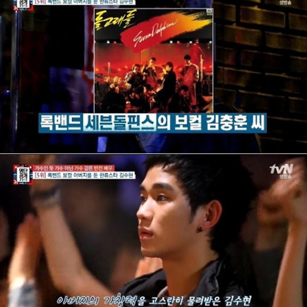 김수현 아버지 록밴드 보걸 김충훈배우 김수현의 아버지 김충훈이 화제가 되고 있습니다.지난 8일 tvN 명단공개 2015에서는 김수현이 가수 인 듯 가수 아닌 가수 같은 반전 배우 5위에 선정되었는데요 사실 김수현은 록밴드 보걸 김충훈 의 아들이었습니다. 김수현 아버지는 록밴드 세븐돌빈스의 보걸인데요 최근 까지 왕성한 활동을 하고 있는 소식이 더욱더 화제가 되고 있습니다.
